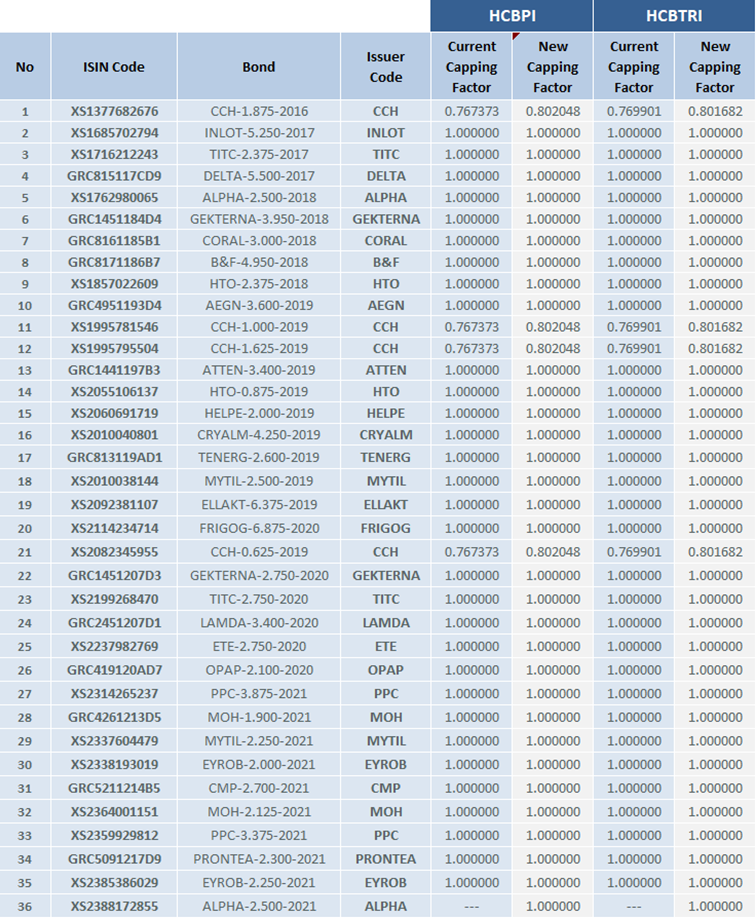 Athens Stock Exchange announces the changes in the composition of the «Hellenic Corporate Bond Indices» according to index Ground Rules.