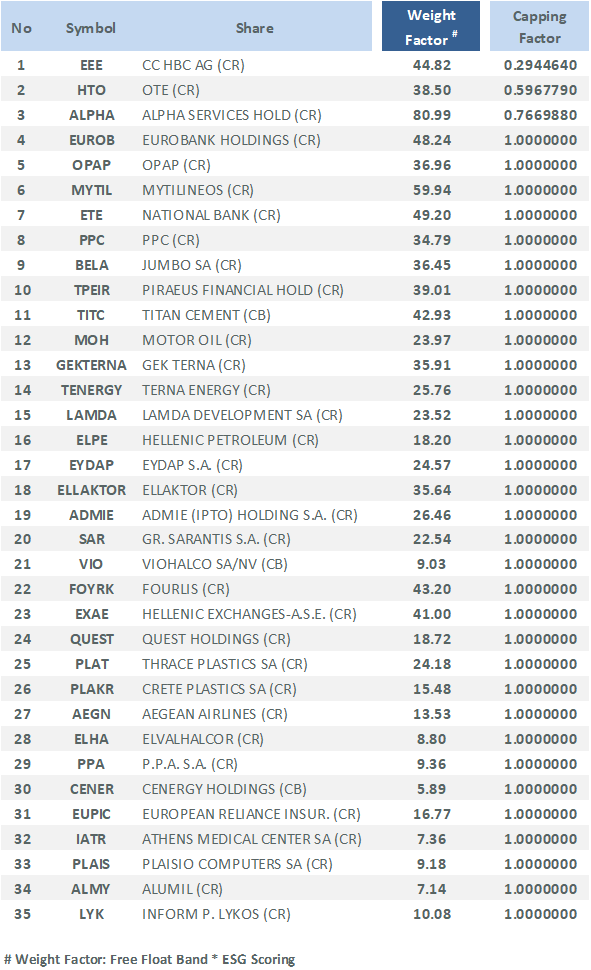 Constituents & Factors of ATHEX ESG Index