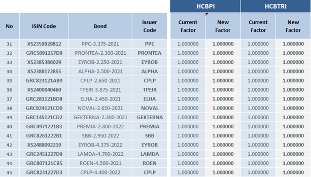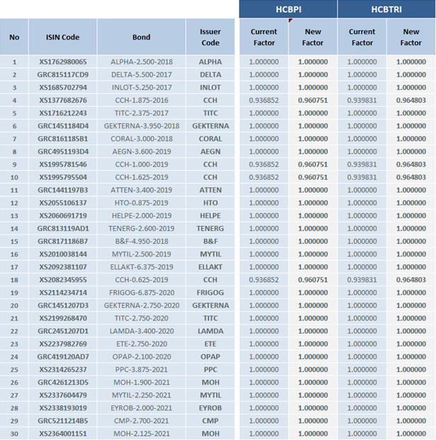 Athens Stock Exchange announces the new capping factors of the constituents of the «Hellenic Corporate Bond Indices».