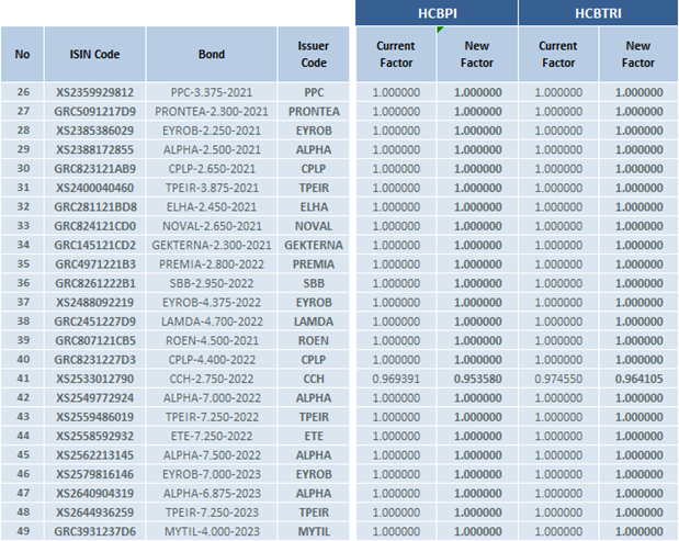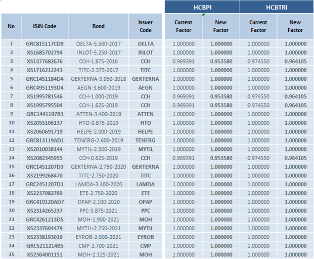 Athens Stock Exchange announces the changes in the composition of the «Hellenic Corporate Bond Indices» according to the Ground Rules for the management of the indices.