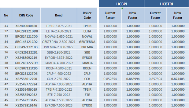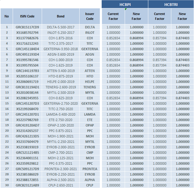 | Changes in the Composition of Hellenic Corporate Bond Indices | |||