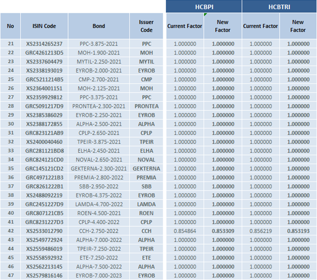 Athens Stock Exchange announces the changes in the composition of the «Hellenic Corporate Bond Indices» according to the Ground Rules for the management of the indices.
