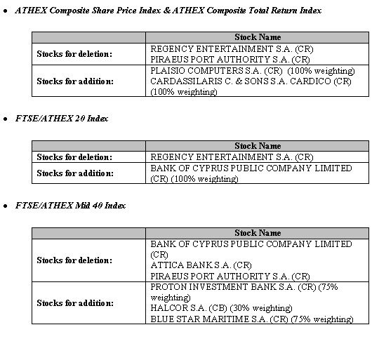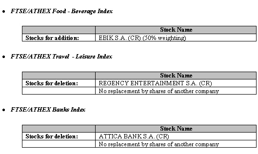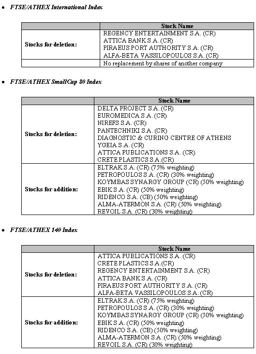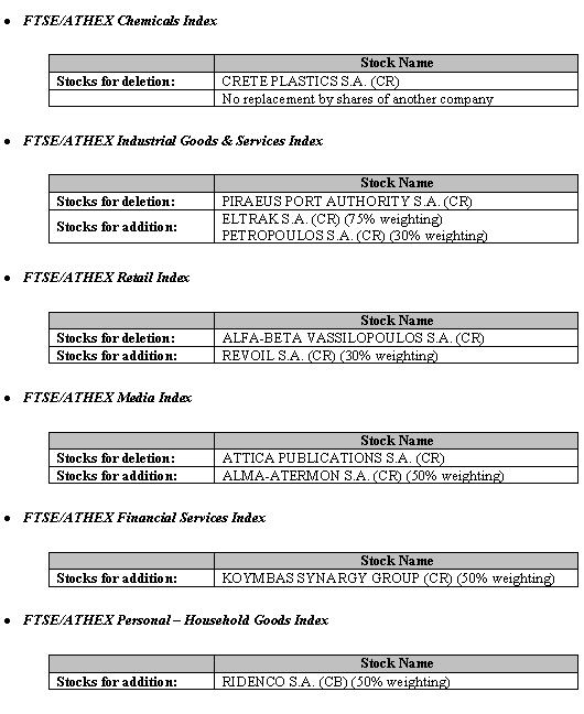 The aforementioned changes will be put into effect prior to the start of the trading session of the ATHEX on Monday, October 9, 2006.