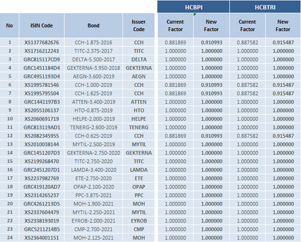 Athens Stock Exchange announces the changes in the composition of the "Hellenic Corporate Bond Indices" according to the Ground Rules for the management of the indices.