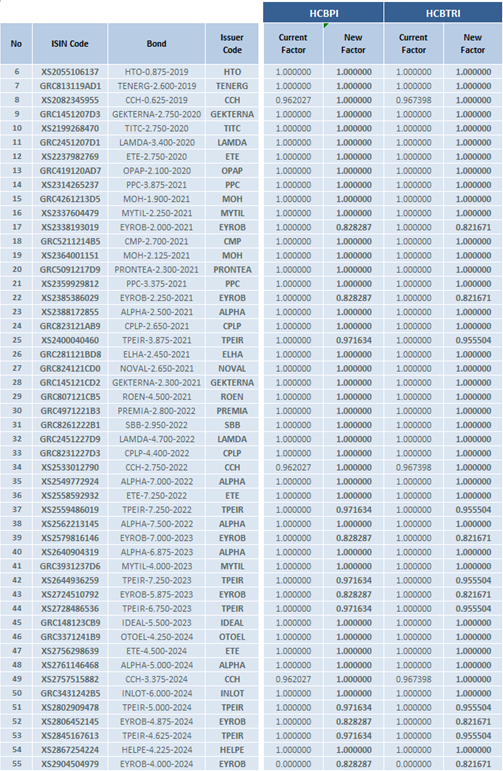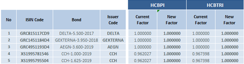 Athens Stock Exchange announces the changes in the composition of the "Hellenic Corporate Bond Indices" according to the Ground Rules for the management of the indices.